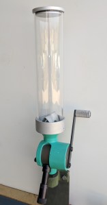 The hopper comes with a custom baffle to insure consistent drops and a lid with an O-ring to help keep moisture out.